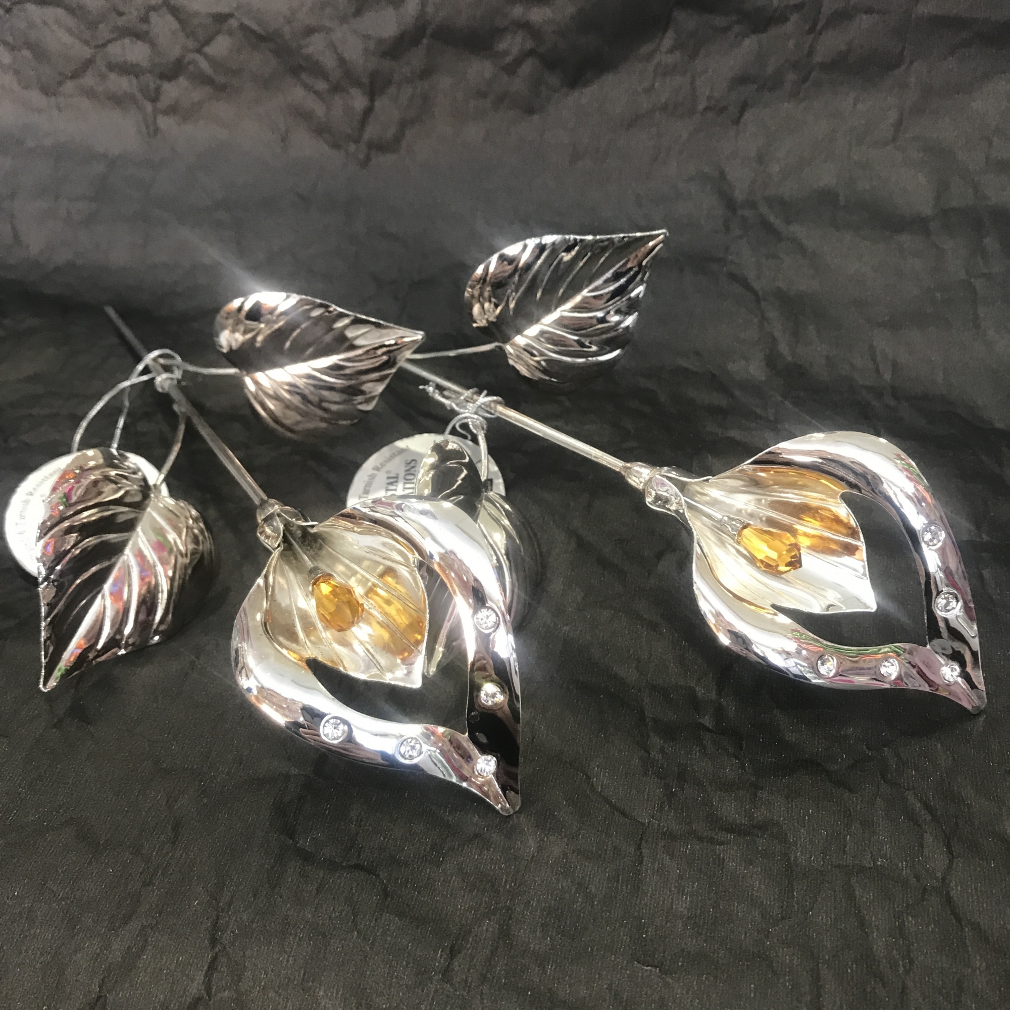 Сувенир из цветочной серии. Инкрустирован кристаллами. Напыление - микронное серебро. Высота 18 см. Индивидуальная упаковка.