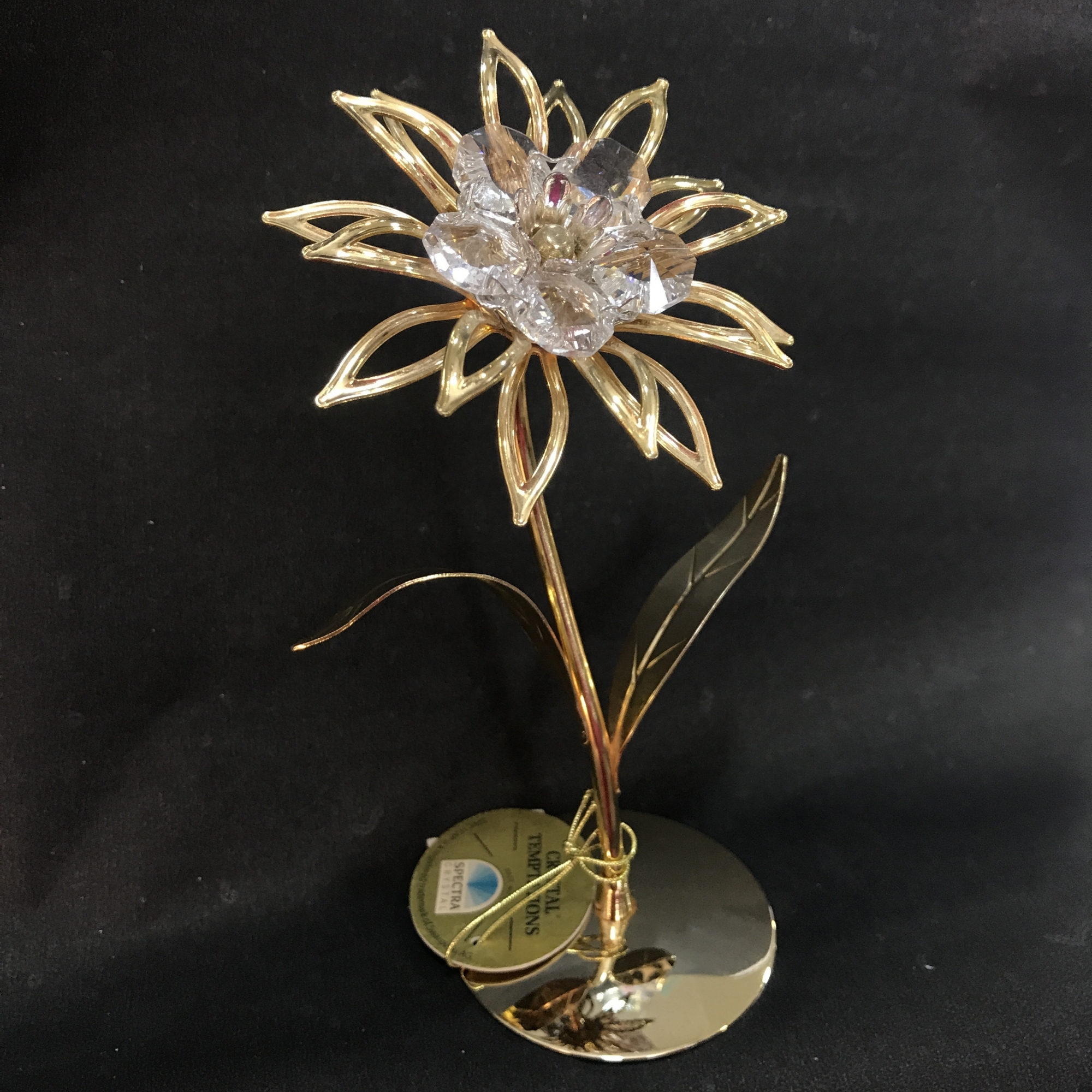 Сувенир из цветочной серии "Crystal Temptations". Инкрустирован кристаллами Swarovski. Напыление - микронное золото. Высота 14,8 см. Индивидуальная упаковка.