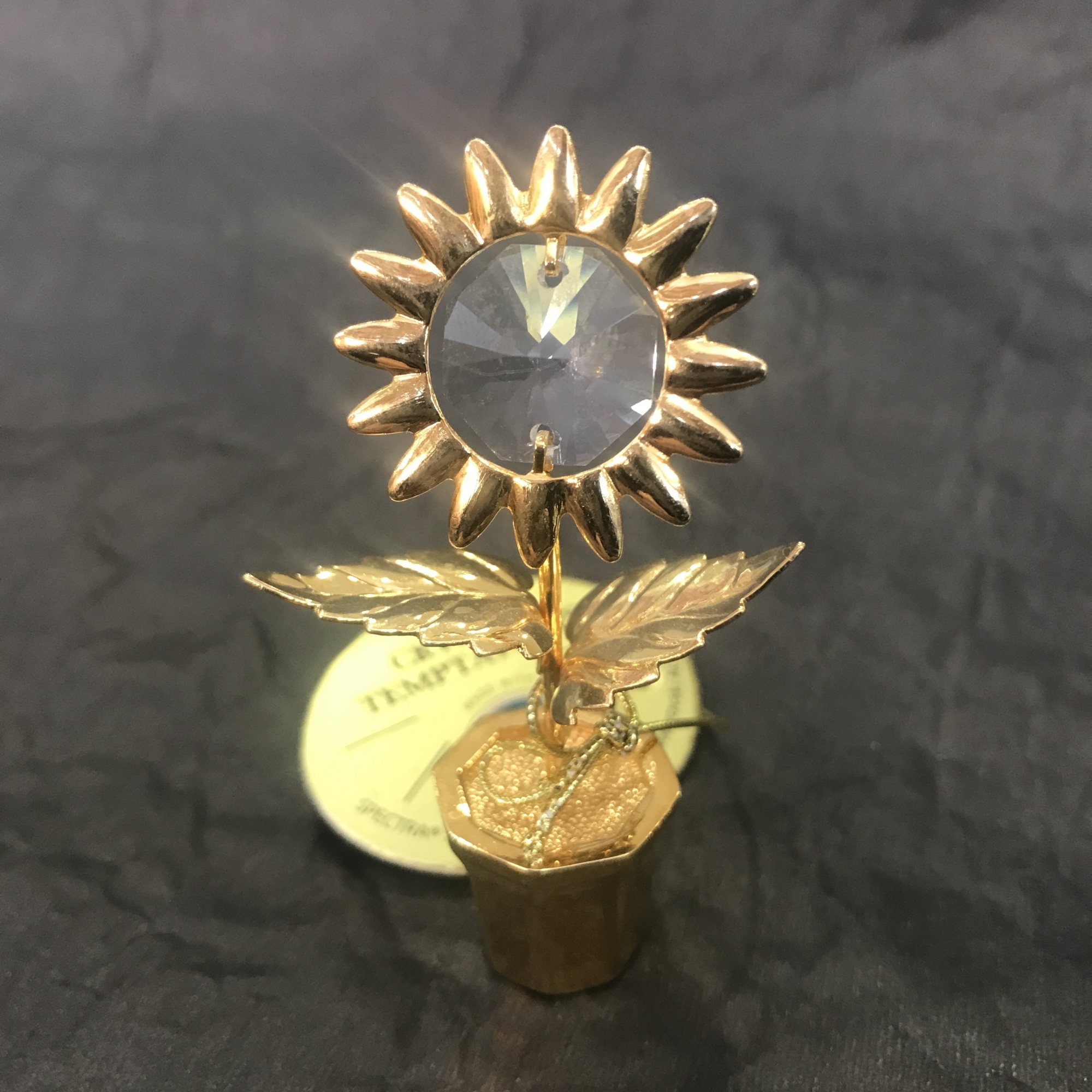 Сувенир из цветочной серии. Инкрустирован кристаллами. Напыление - микронное золото. Высота 7 см. Индивидуальная упаковка.