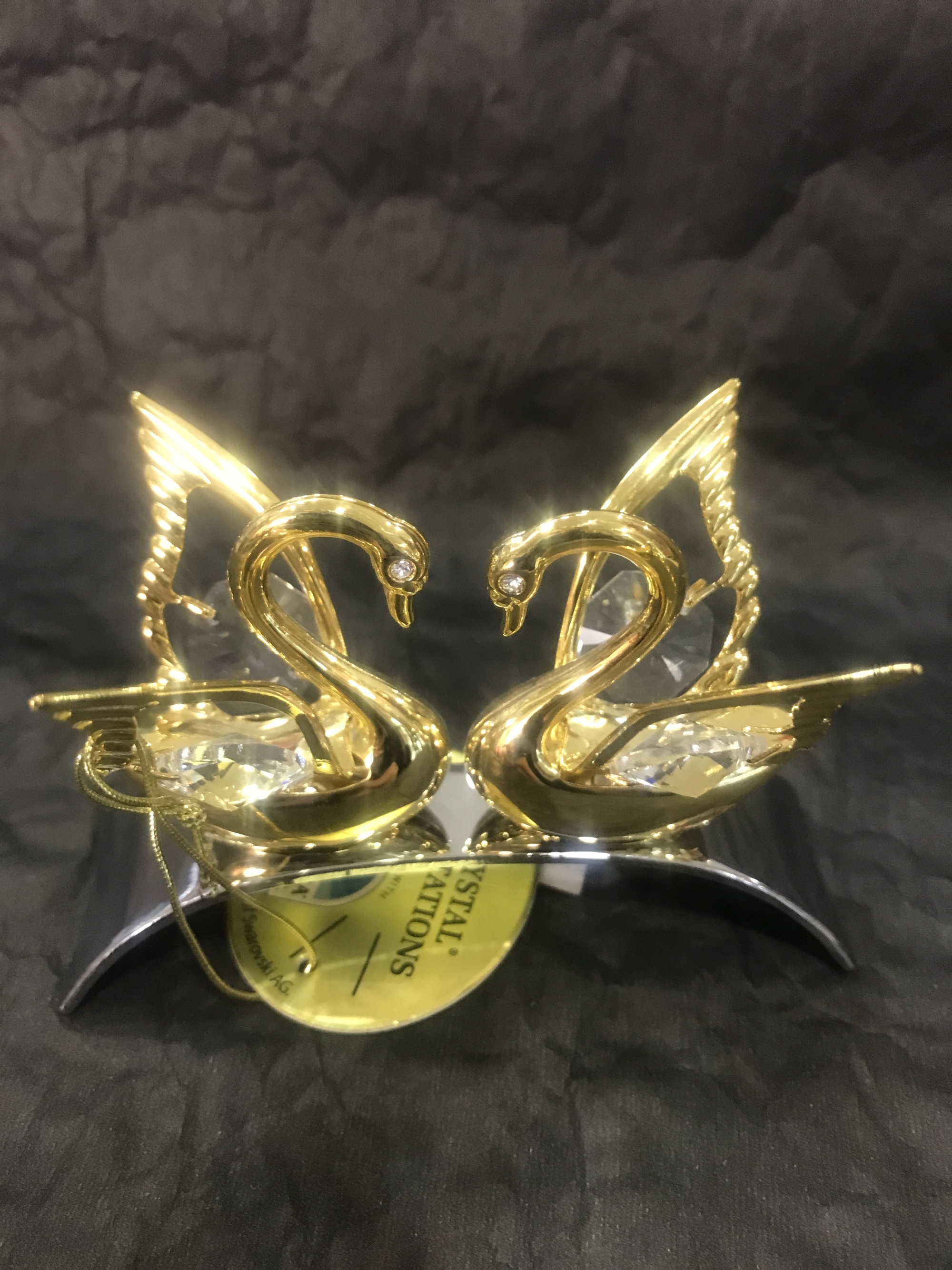 Сувенир из серии "Птицы". Инкрустирован кристаллами Swarovski. Напыление - микронное золото. Высота 5,5 см. Индивидуальная упаковка.