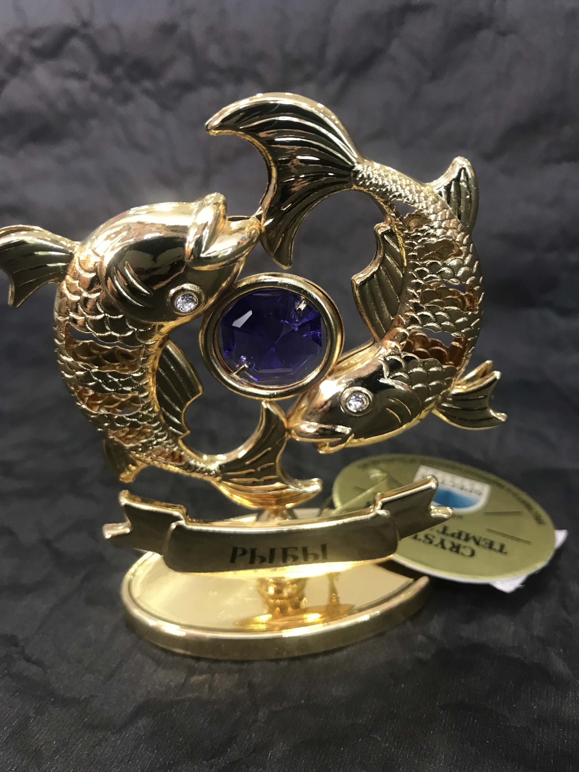 Сувенир из серии "Знаки зодиака". Инкрустирован кристаллами Swarovski. Напыление - микронное золото. Высота 8 см. Индивидуальная упаковка.