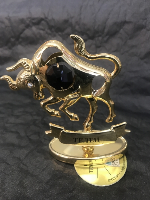 Сувенир из серии "Знаки зодиака". Инкрустирован кристаллами Swarovski. Напыление - микронное золото. Высота 8,9 см. Индивидуальная упаковка.