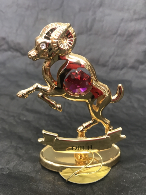 Сувенир из серии "Знаки зодиака". Инкрустирован кристаллами. Напыление - микронное золото. Высота 8,5 см. Индивидуальная упаковка.