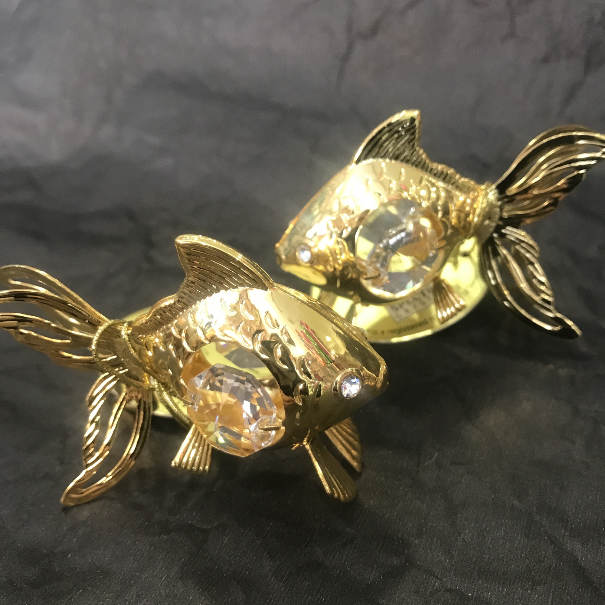 Сувенир из серии "Водные знаки". Инкрустирован кристаллами. Напыление - микронное золото. Высота 4,8 см. Индивидуальная упаковка.