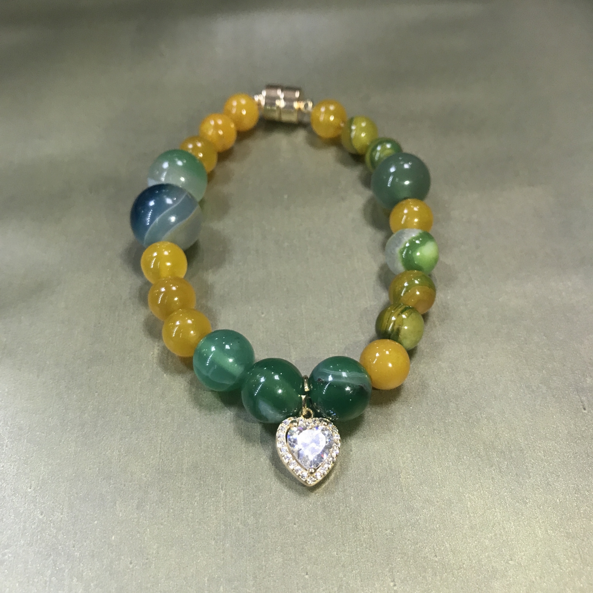 Браслет с индивидуальным шармом "Сердце". Натуральные минералы г. Куса, Челябинская область