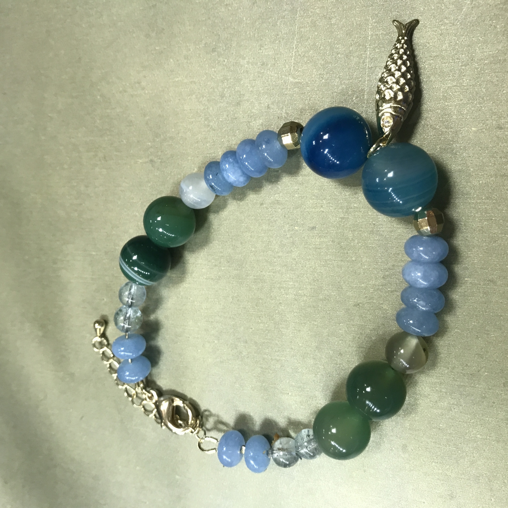 Браслет с шармом "Рыбка". Натуральные минералы г. Куса, Челябинская область
