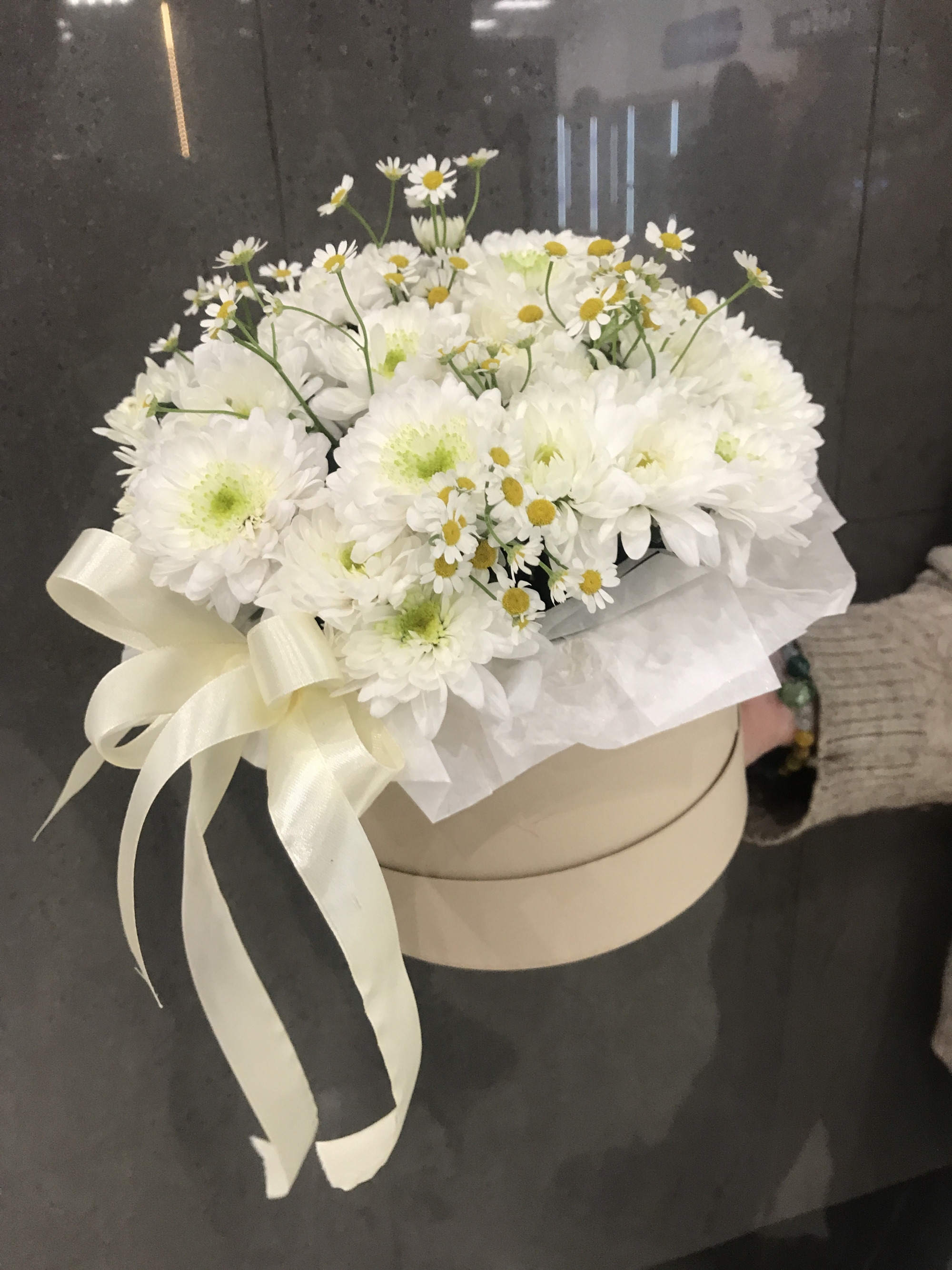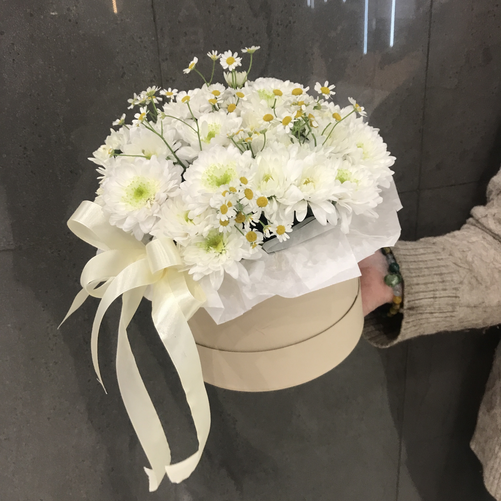 Хризантема кустовая 3 шт., матрикария 2 шт.