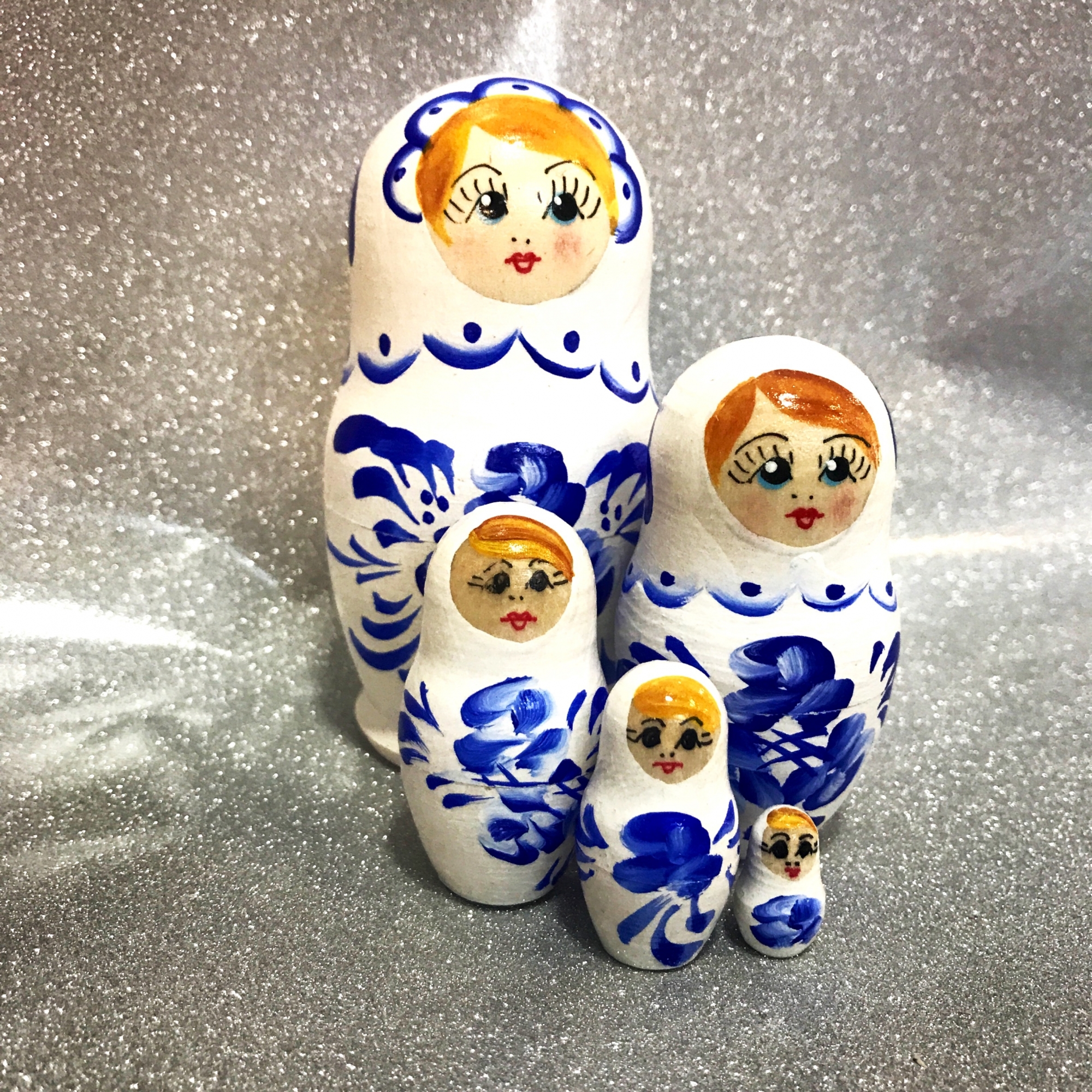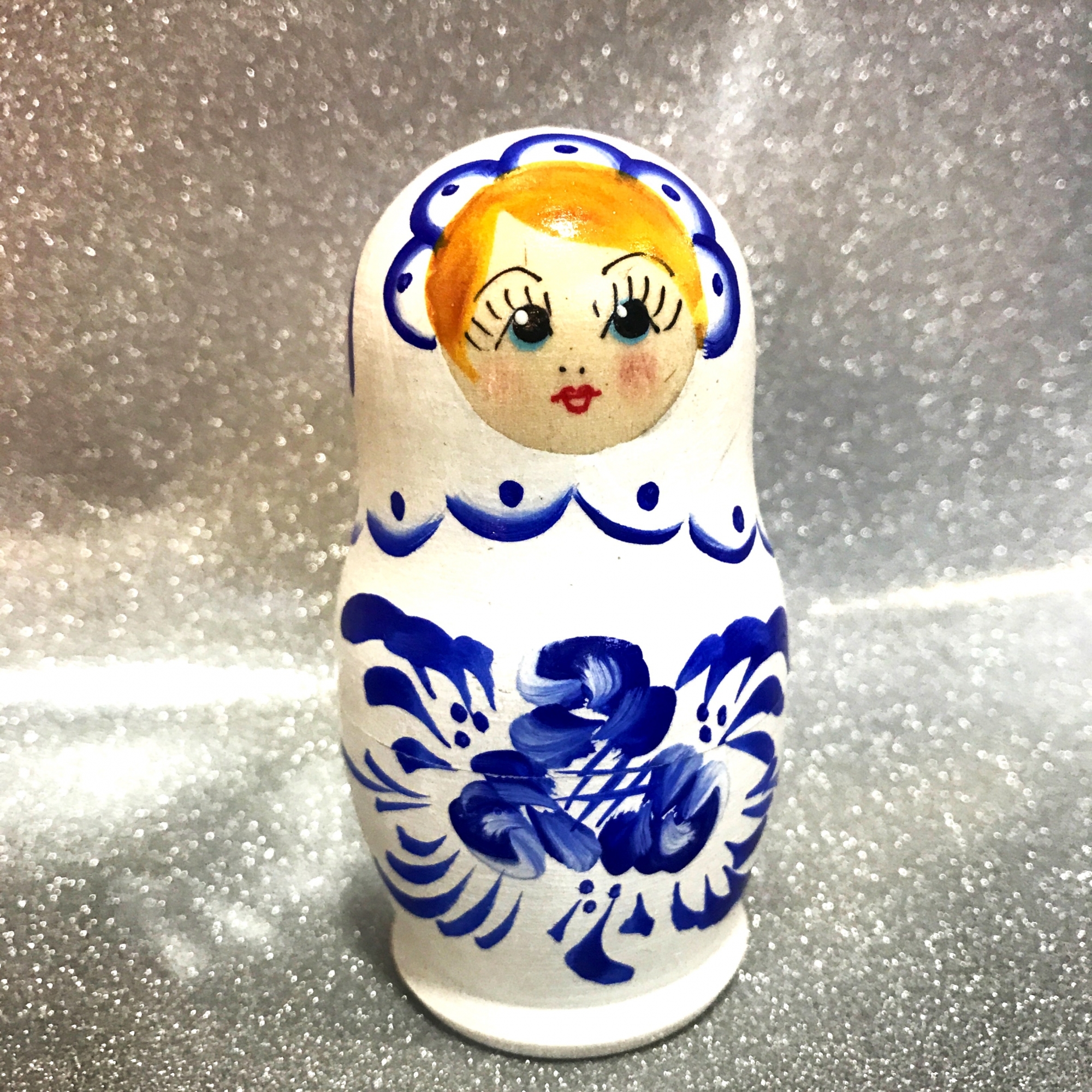 Матрёшка Синие цветы на белом