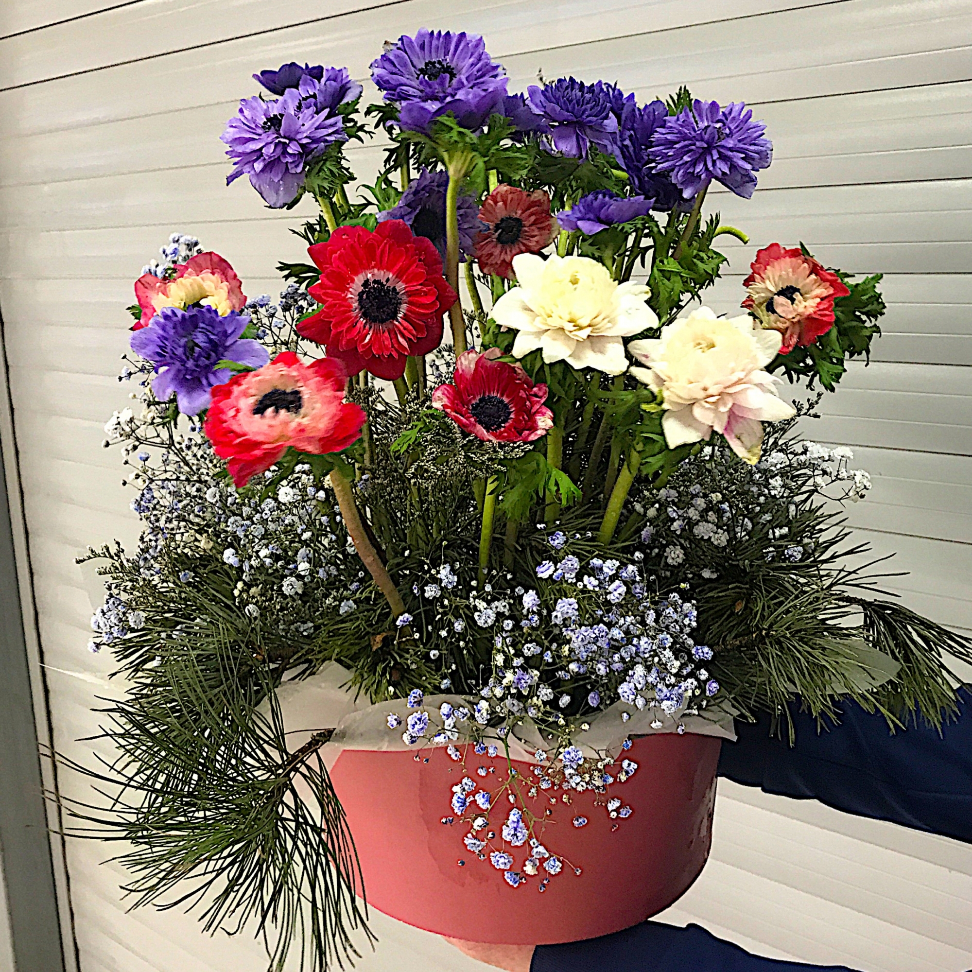 Гипсофила 4 шт., хвоя 3 шт., анемоны 19 шт.